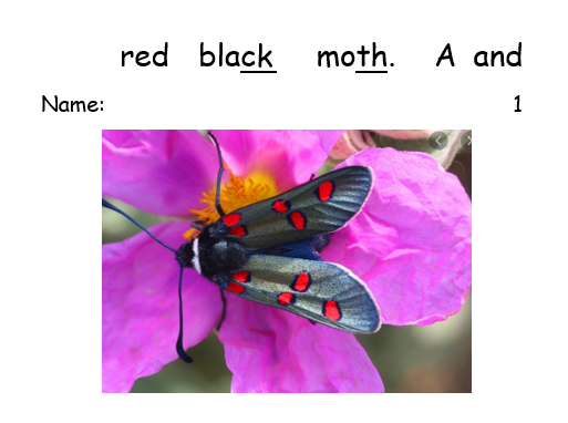 Today’s sentence should be “A black and red moth.”