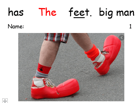 - Once the words are arranged in the correct order, ask your child to attempt copy this sentence on to the sheet doing their best to stay on the line. Again please remind the children about the 3 elements of sentence writing.