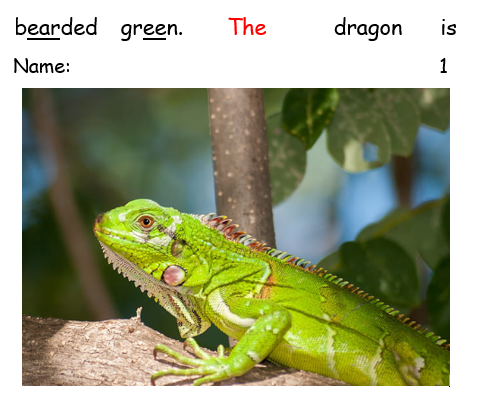 - Together with your child, arrange the cut out words into the correct sentence, reminding your child about the 3 elements of sentence writing; capital letter at the start, finger spaces and a full stop at the end.